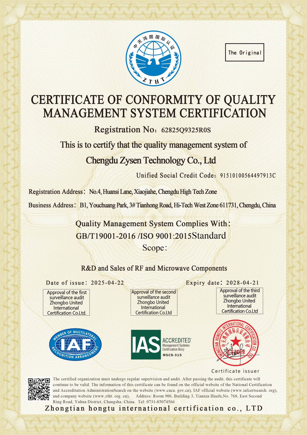 CHENGDU ZYSEN Technology Co., Ltd., a innovator in RF & Microwave components and RF subsystems, is proud to announce the successful completion of its ISO 9001:2015 Quality Management System (QMS) annual audit. This achievement underscores the company’s unwavering commitment to delivering high-quality products, ensuring customer satisfaction, and pursuing sustainable and healthy development.